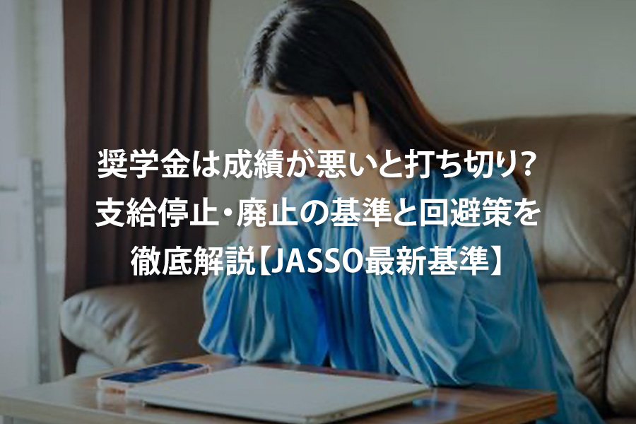 日本学生支援機構(JASSO)の給付型・貸与型奨学金では、毎年「適格認定(学業)」という成績チェックが行われています。ここで基準を下回ると「警告」→「停止」→「廃止」と段階的な措置が取られます。